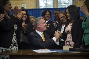 ブロンクス区の高校で行われた署名式の様子 (photo: nycmayorsoffice)