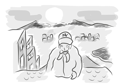 のんびりでも頂上まで登ると息が切れる。ぼくは深呼吸をしながらゆっくり登ってくる母を見守った。そしていつもならひと休みする所まで来た母。しかしこの日はそのまま止まらずに歩き続けた。もしかして、そう見守っている間に母はさらに登ってきた。上に行くほど急になる坂。その急坂をピンク色のNYキャップがどんどん近づいてきた。