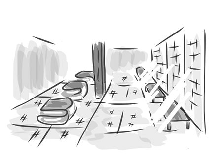 障子をそっと開けるとお坊さんがすっと出てきた。きっと電話の人だ。 そのまま部屋に案内され畳の上に正座。それからお坊さんは静かに説明を始めた。間に合ったみたいだ。基本的には境内の外へ出ない限り自由。買い食い禁止。あとは毎日湯のみ20杯の水を飲み紙に記録。そして1日のスケジュールはこんな感じ。