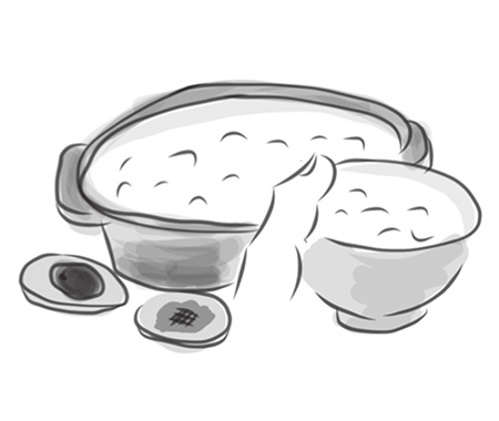 土鍋からはお粥の炊けたなんとも言えない良い香りが上っていた。そして隣には梅干しが1個。赤い色が食欲をそそる。そして小皿に少し盛ってあるのは焼き味噌のようだ。ちょっと焦がした味噌はたまらなくおいしそう。