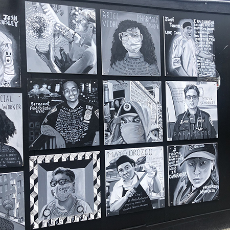 1990年からブルックリン区を拠点に活動する芸術団体、ラス・ミュラリスト・エル・プエンテが同作品を製作。壁画には郵便局や食料品店の従業員、医療関係者の他、21人の働く人々の姿が、60センチメートルの正方形のパネルに、白黒で描かれている。同団体の代表、ジョー・マトュニスさんによると「コロナ禍の現在、私たちがコミュニティに貢献できることを考え思いついた」と製作理由を明かした。