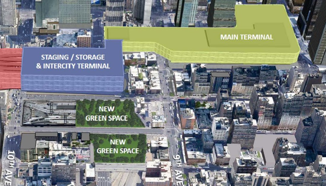 計画書によると、同区42丁目と8番街のポート・オーソリティ・バスターミナルを運営するPAは、同ターミナルから1ブロック南西に離れた場所に、新たな施設を建設する予定。2026年ごろに同施設がオープンすると、一時的に業務を同施設に移し、既存のターミナルを解体して新しいターミナルを建設する。最終的に2つの施設は9番街の高架および地下で接続され、単一の拡張された複合施設となる。完成は、2030年から31年ごろの予定。同局は、環境再調査のための計画書を連邦政府に提出する予定で、23年に工事を開始することを望んでいる。以前計画されていたターミナル立て替え計画では、100億ドル(約1兆378億円)の費用が推定されていたが、新たな計画はそれを大幅に上回ることが予想されている。計画書に、新たな推定費用の金額については記されていなかった。費用の一部は、敷地内の3つのタワーの開発権の売却によって賄われる可能性があることが示唆されている。1950年にオープンした現在のターミナルでは、1980年代初め以来、大規模な拡張工事は行われていない。
