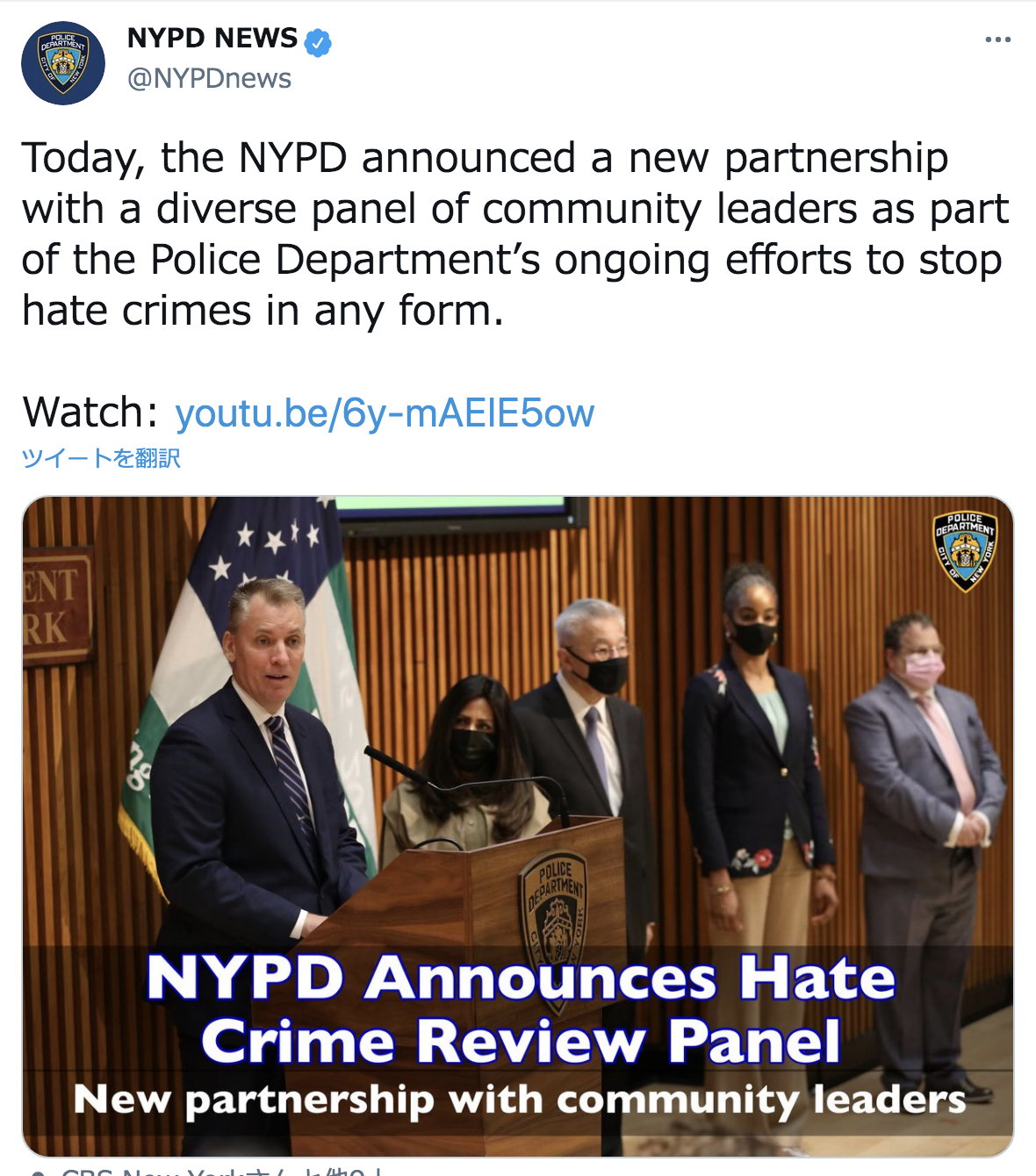 ニューヨーク市警察(NYPD)は19日、アジア系住民に対するヘイトクライムを審査する委員会に民間人を採用した。同日、ニューヨークポストが報じた。