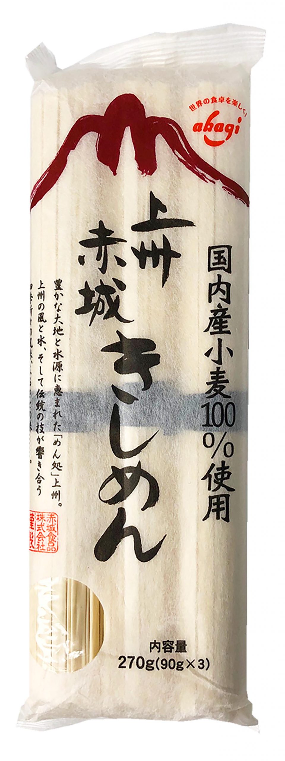 良質の原料と水、そして気候風土に恵まれ、古くから麺どころとして知られてきた上州。土地の風と水を生かし、伝統の技法で作り上げた、こしのあるきしめん、清涼感漂うそうめん。国内産小麦を100%を使用し、塩(国内産)と水だけで練り、伝統的な技法でつくった安全・安心な、こだわりの麺だ。