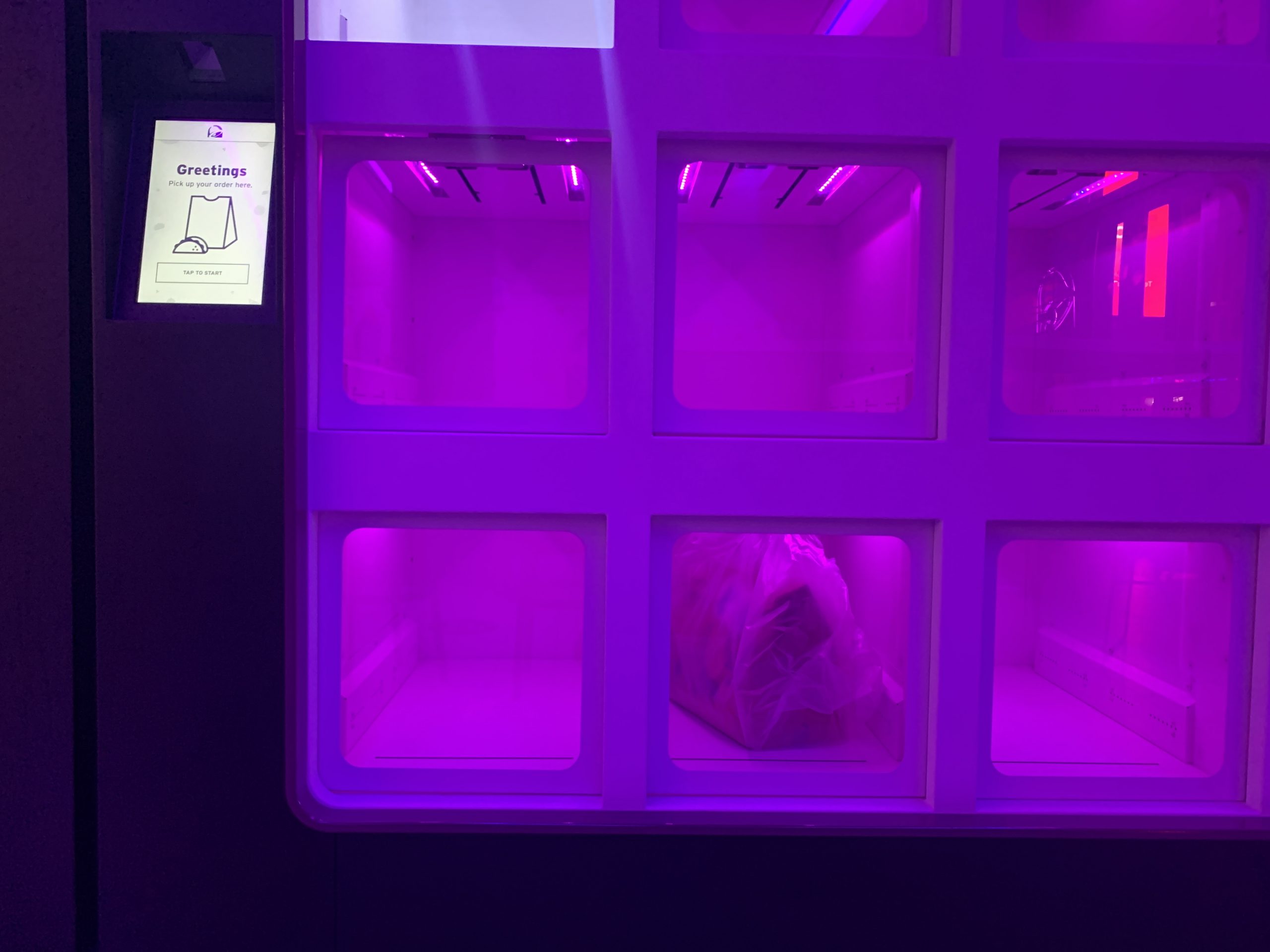 オープンキッチンの高級店舗でアルコール類を提供。オンラインで注文すると、ロッカーで受け取る仕組み。専用出入口を使うため、人との接触が最小限に抑えられる。レストラン内に並ぶキオスクで注文した場合は、奥のカウンターで受け取る。従業員70人態勢で生産ラインは4つで、通常店舗(35人・2ライン)の倍。