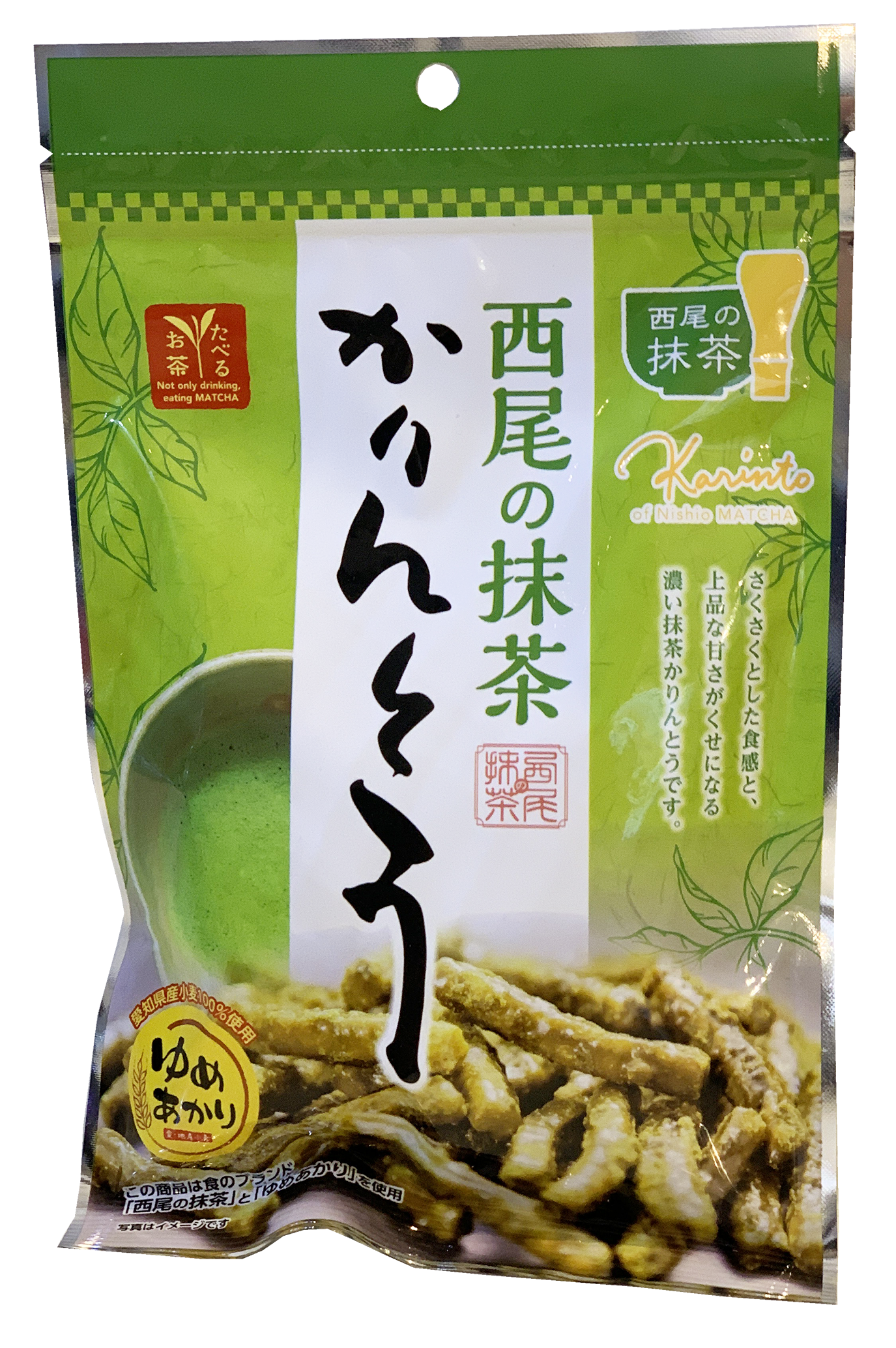 西尾市観光協会との共同開発商品、「西尾の抹茶」を贅沢に使用した濃い味のかりんとう。抹茶に愛知県産小麦の「ゆめあかり」を組み合わせたこだわり。さくさくとした食感と上品な甘さがくせになる。
