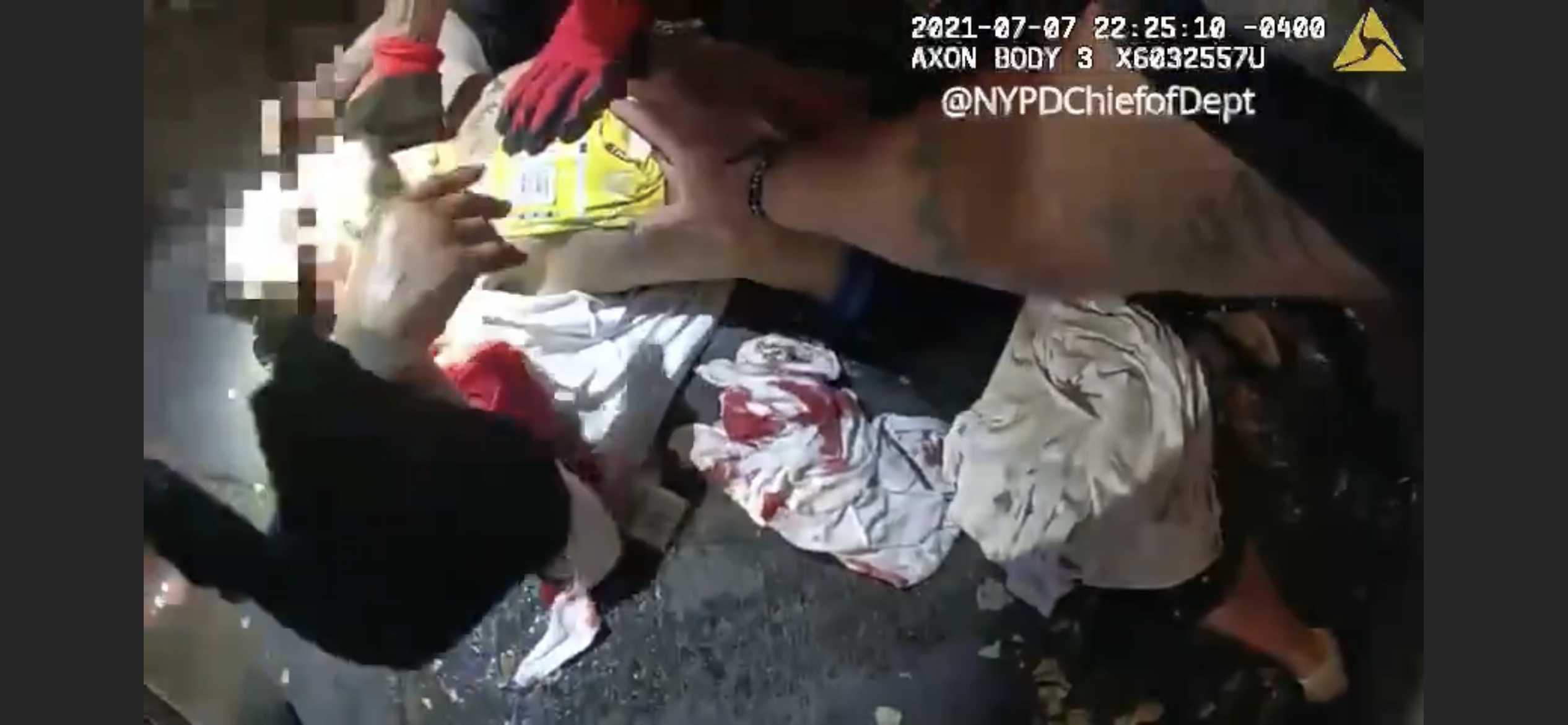 ロナルド・ケネディ巡査は7日、ハーレムの路上で倒れて、出血している男性を同僚と共に発見。「空気が入って肺が潰れてしまうと困る」(巡査)として、ポテトチップスとテープを用意するよう周囲に命じた。警察が公開した動画には、巡査が「今すぐポテトチップスを買ってきてくれ」と大声で叫んでいる様子が映っている。