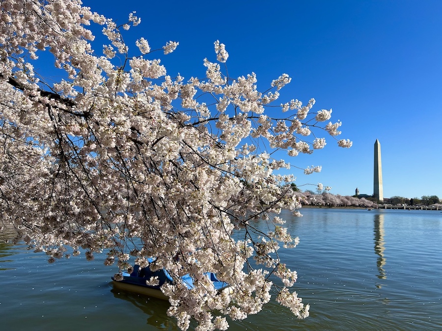 ジェファーソン記念堂やワシントン記念塔などの白亜の建造物との相性の良さ、池の縁のなだらかな曲線にこぼれそうに咲き誇る桜達の、優雅で華やかな情景は心の琴線に触れて目が離せず、しばし立ちつくしました。
