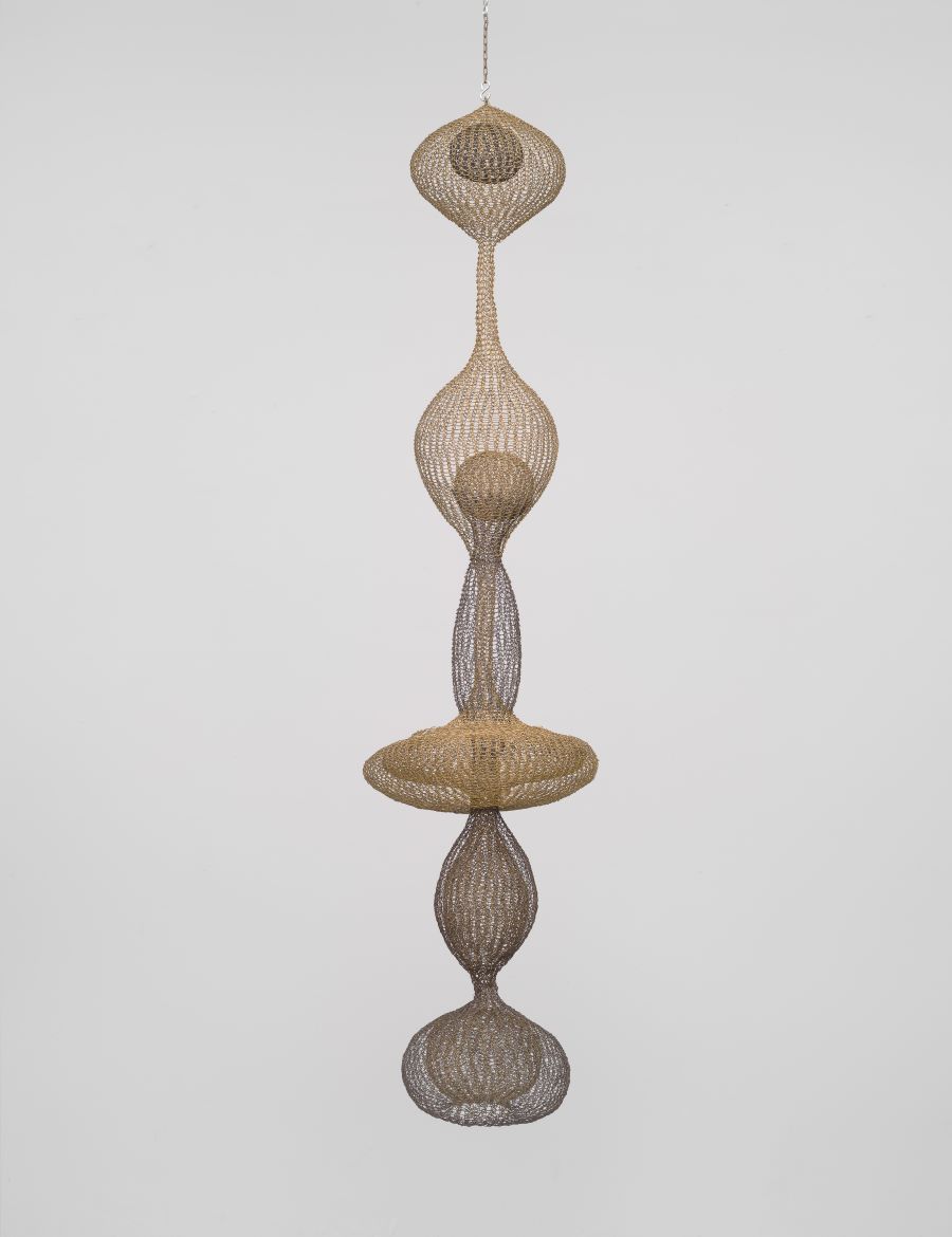 ルース・アサワ(1926年―2013年)は日本ではあまり知られていないが、米国では2020年に郵便記念切手も発行されるなど認知度の高い日系米国人女性作家だ。福島県から移民した両親のもとカリフォルニア州ノーウォークに生まれる。6人の兄弟と共に南カリフォルニアの農家で育つ。小学校時分は毎週日本語と書道教室に通うが1941年に太平洋戦争が勃発し人生が大きく変わることになる。1942年に父親がFBIに逮捕され、アサワと母親と5人の兄弟はサンタ・アニタ競馬場に強制収容される。その後アーカンソー州日系人強制収容所に送られる。収容所ではディズニー・スタジオのアニメーターや美術講師など日系人アーティストと知り合い絵を描くようになる。収監中にアートに目覚め、その後は1946年にノースカロライナ州のブラック・マウンテン・カレッジに進み芸術を学ぶ。ジョン・ケージやマース・カニングハム、ドイツのバウハウスに学んだヨゼフ・アルバース、バックミンスター・フラーなど名だたる前衛芸術家や思想家が教授陣で、実験的な芸術を基礎としたリベラルアーツ教育をする進歩的な大学だった。その大学で知り合った建築家のアルバート・ライナーと結婚。拠点はサンフランシスコとなる。アサワは作品制作だけでなく社会的な活動にも力を注いだ。特に子供に向けた美術教育に熱心だった。「子供は色彩、デザイン、そして自然を学ぶ能力がある。芸術は人を幅広くし向上させてくれる」という信念のもと、68年には友人と共同でアート・スクールを設立。また1960年代の社会不安に影響され、コミュニティで積極的に発言するようになる。1968年にはサンフランシスコ芸術委員会の委員に任命される。ほかのアーティストたちと社会変革を提唱する。アサワは6人の子育てをしながらも生涯制作の手を止めることはなかった。2013年87歳で亡くなるまで西海岸を中心に多くの個展を開いている。