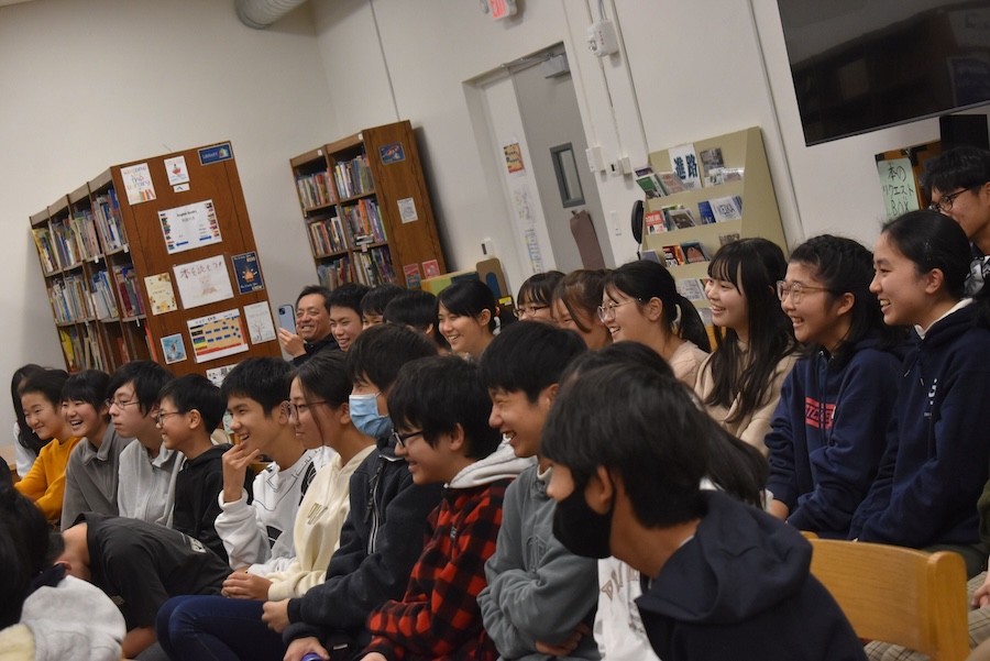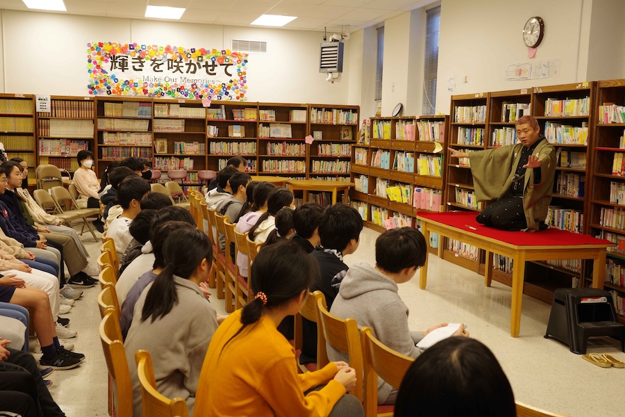 ニューヨーク日本人学校(コネチカット州グリニッチ、岡田雅彦校長、児童生徒数110人)は、12月8日(金)に立川志の春師匠を招き、落語公演を行った。