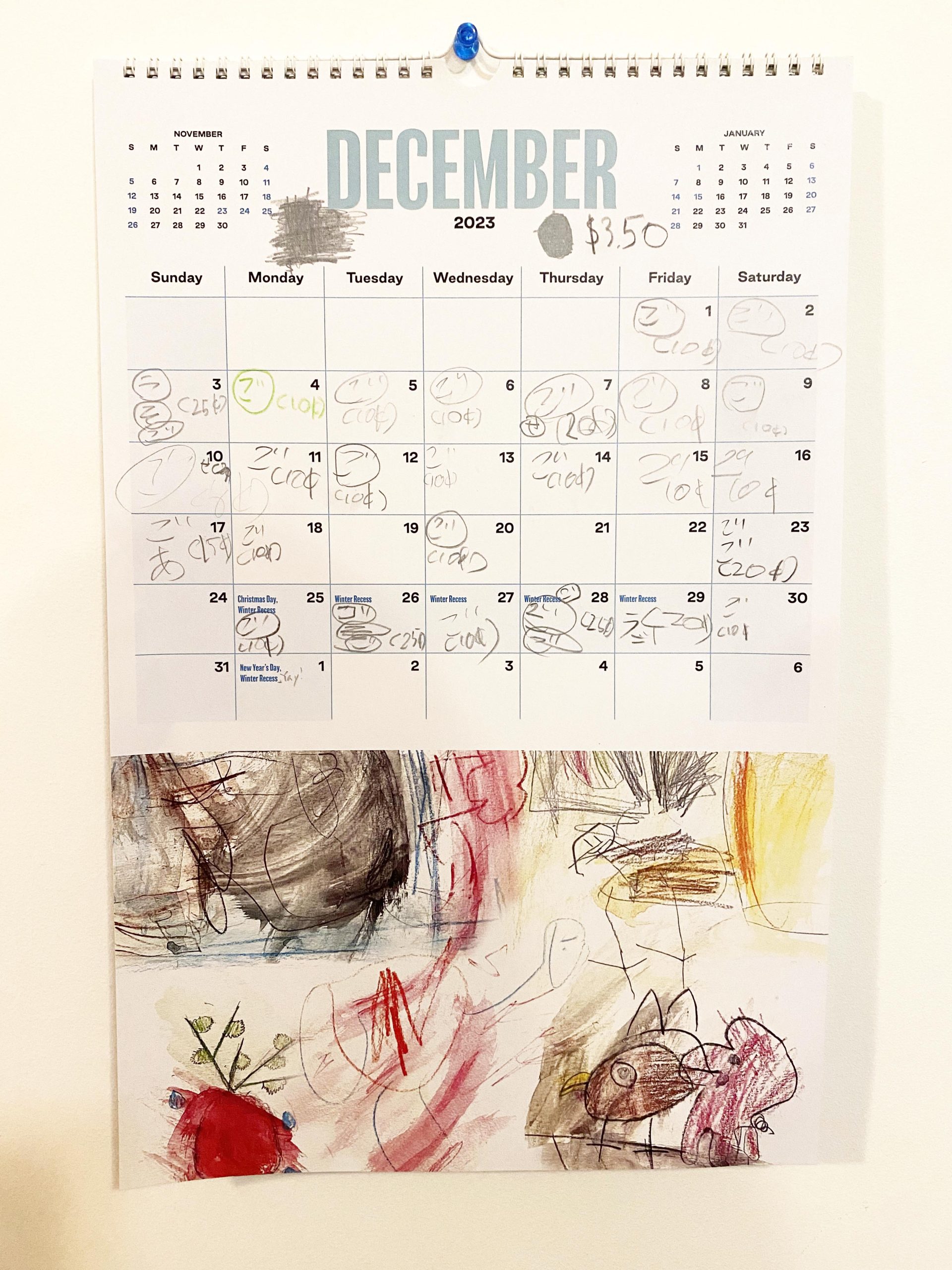ゴミ捨ては、毎晩一日の終わりにダストシューターにゴミを捨ててくる。ランドリーは、自分の服やみんなで使っているタオルなど、畳んで棚にしまう。お掃除は、家中に掃除機をかけてもらう。料理は、お休みの日などに朝ごはんを自分で作る。洗い物は、文字通り食後に家族みんなの分の洗い物。それぞれお手伝い一回につき10セント。任務終了後、カレンダーにその日の報酬をメモ。ゴミ捨てはほぼ毎晩行くので、それだけでも月に3ドルは確実です。あとはどれだけ他のお手伝いで金額をプラスしていけるか!
