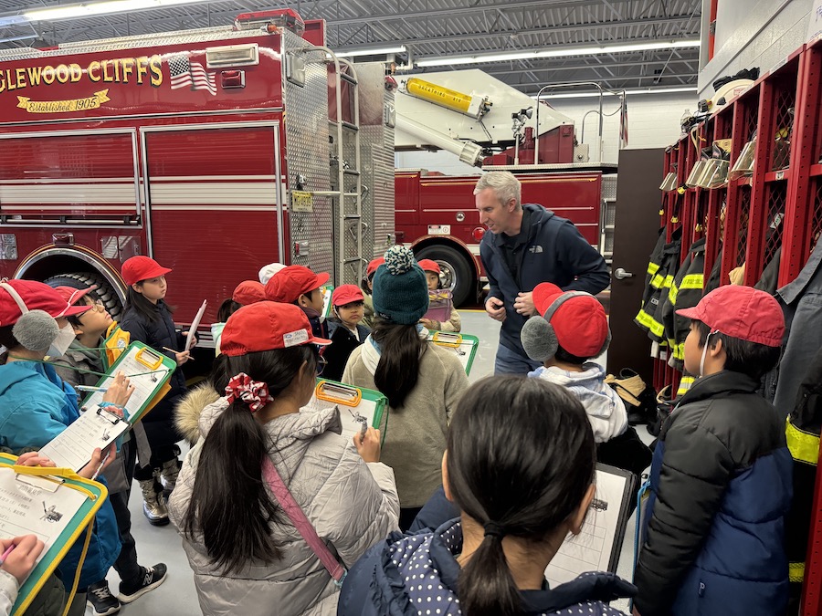 ニューヨーク育英学園全日制部門(ニュージャージー州イングルウッドクリフス 岡本徹学園長)では、1月22日に小学3・4年生17人で地元のイングルウッドクリフス消防署を訪れた。