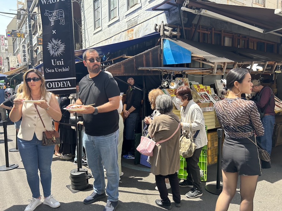 築地をそぞろ歩く観光客は、目が好奇心で輝き、笑みを浮かべ、とても楽しそうだった。私も彼らを見て嬉しかった。世界からの人々であふれるニューヨークやパリにいる気分になった。観光客には嬉しい状況が、日本が抱える大きな問題であることに気づくまでは。