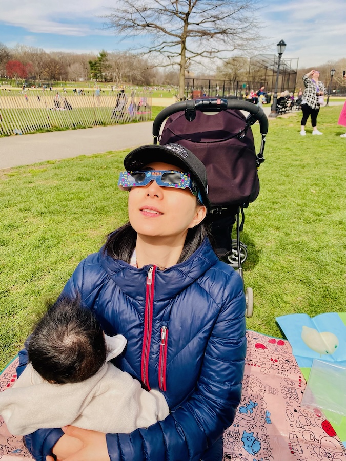 今月8日(月)にニューヨークで観測することが出来たEclipse(日食)、みなさんはご覧になりましたか?私は学校終わりの息子、夫とBrooklynのProspect Parkで待ち合わせをして、4カ月になった娘を連れてみんなで観測しました!息子の学校のお友達やママパパ友もたくさん集まって、レジャーシートを敷いてみんなでお菓子を食べたりジュースを飲んだりしながら(時期的にまるでお花見みたい笑!)、ワイワイおしゃべりしつつ太陽が欠けていくのをゆっくりと眺めました。