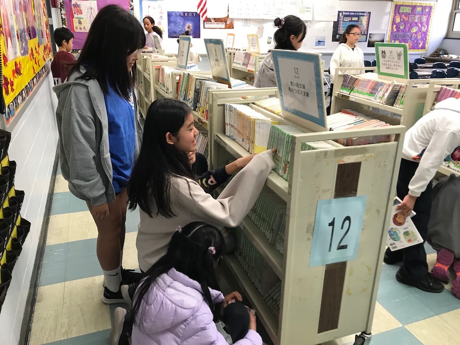 校内にある図書館には、およそ6500冊の日本語の本がある。保護者によって管理、運営されており、新しい本も随時購入されている。毎週3冊まで借りることができ、幼児部から高等部までの子どもたちが日本語の本を通して、知識を深めている。