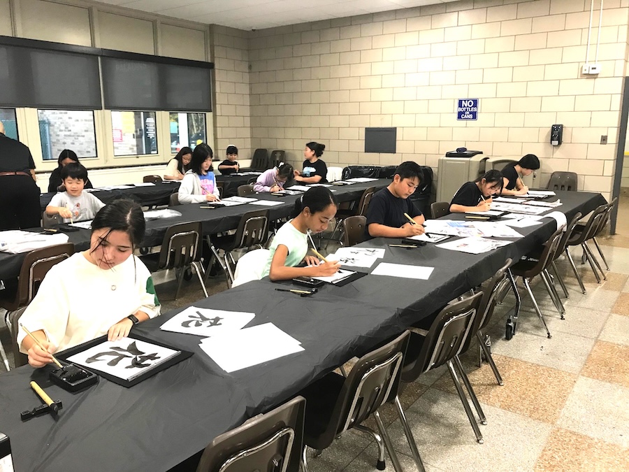 書道クラブでは、ひらがなと漢字を子どもの成長段階に応じて丁寧に練習していく。心を静かに落ち着かせて半紙に向かい、毛筆を使って墨で文字を書く。書道を通して集中力や教養を身に付け、日本文化に浸っている。