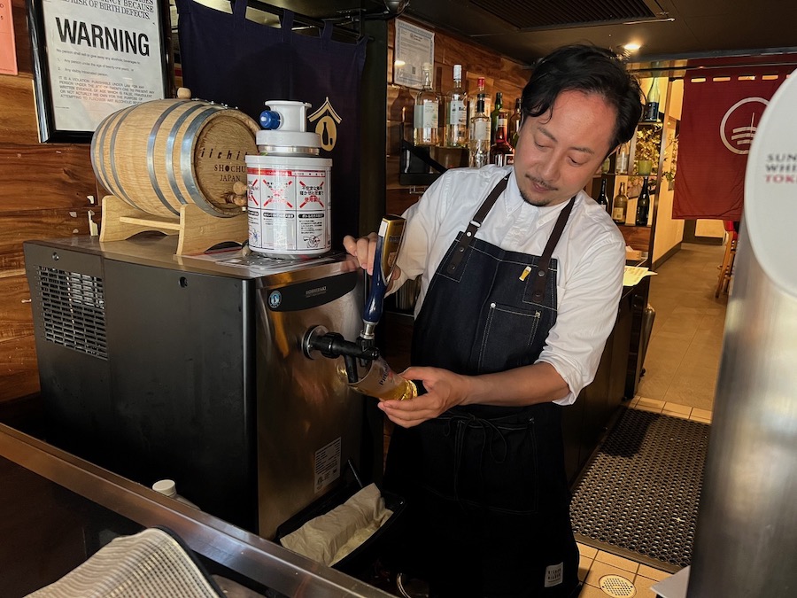 全米でただ一人の“サントリー・ビール品質アドバイザー”の資格を持つBQA (Beer Quality Advisor)KO、中川皓太氏が、ビールサーバーや生ビール樽の取り扱い方法から解説。さらにビールの注ぎ方、プレミアム・モルツの持つ「神泡」の秘密や、飲用時品質の向上(最初の一口について、徹底的に品質にこだわること)の大切さなど詳しく説明した。Ippudoの従業員は、実際に神泡品質のあるビールの注ぎ方によって、味が全く変わることを体験し、中川さんの指導のもと、おいしいビールの注ぎ方を学習した。
