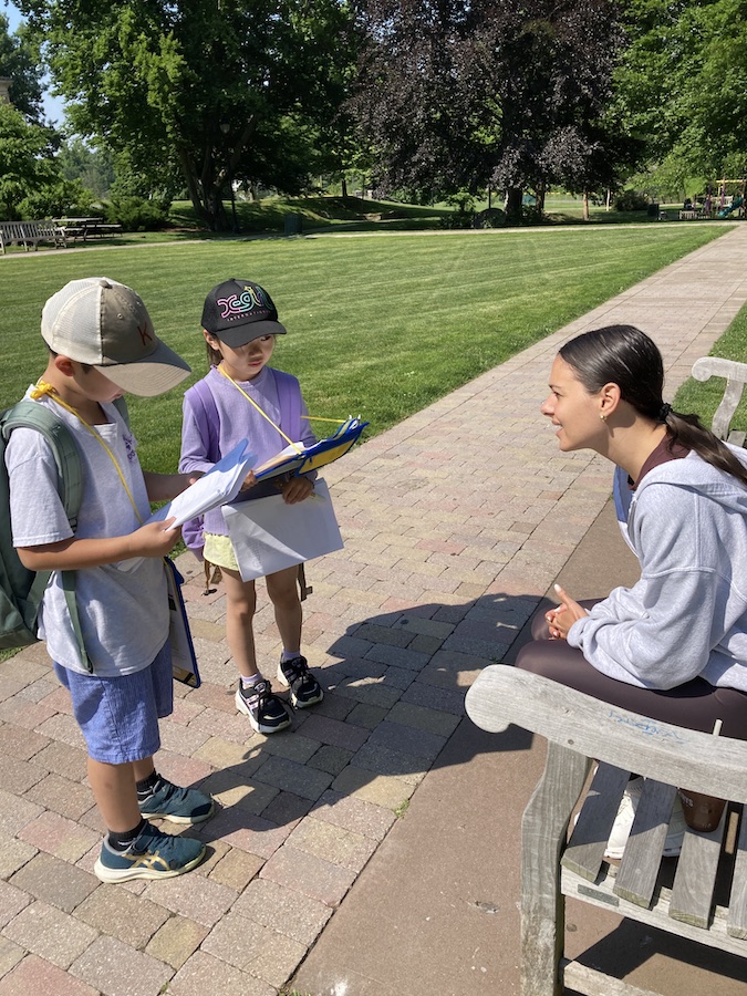 Greenwich Ave.の様子を見て、どの子も様々なお店があることに驚き、探検への興味関心を高めた。実際に通りを歩き、たくさんのゴミ箱が設置されていたり、休息のためのベンチが置いてあったり、昔からある建造物にはそれを守るためのマークがあることを見付けたりと熱心に観察している様子であった。