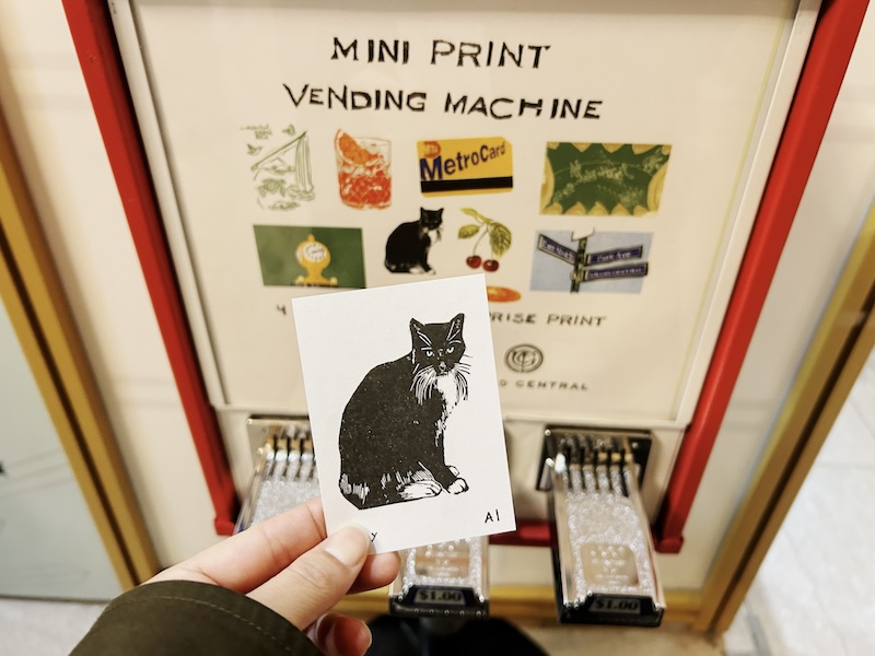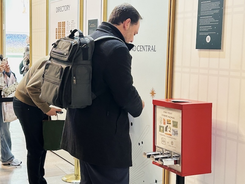 グランドセントラル駅の入り口から長く続く列。先を辿って見ると・・・そこにあるのは小さな自販機。しかもよく見てみると、みんな小さな紙を手にしている。そう、今ニューヨークの街角では、自販機で販売されている「プリント」がプチ話題となっているのだ。