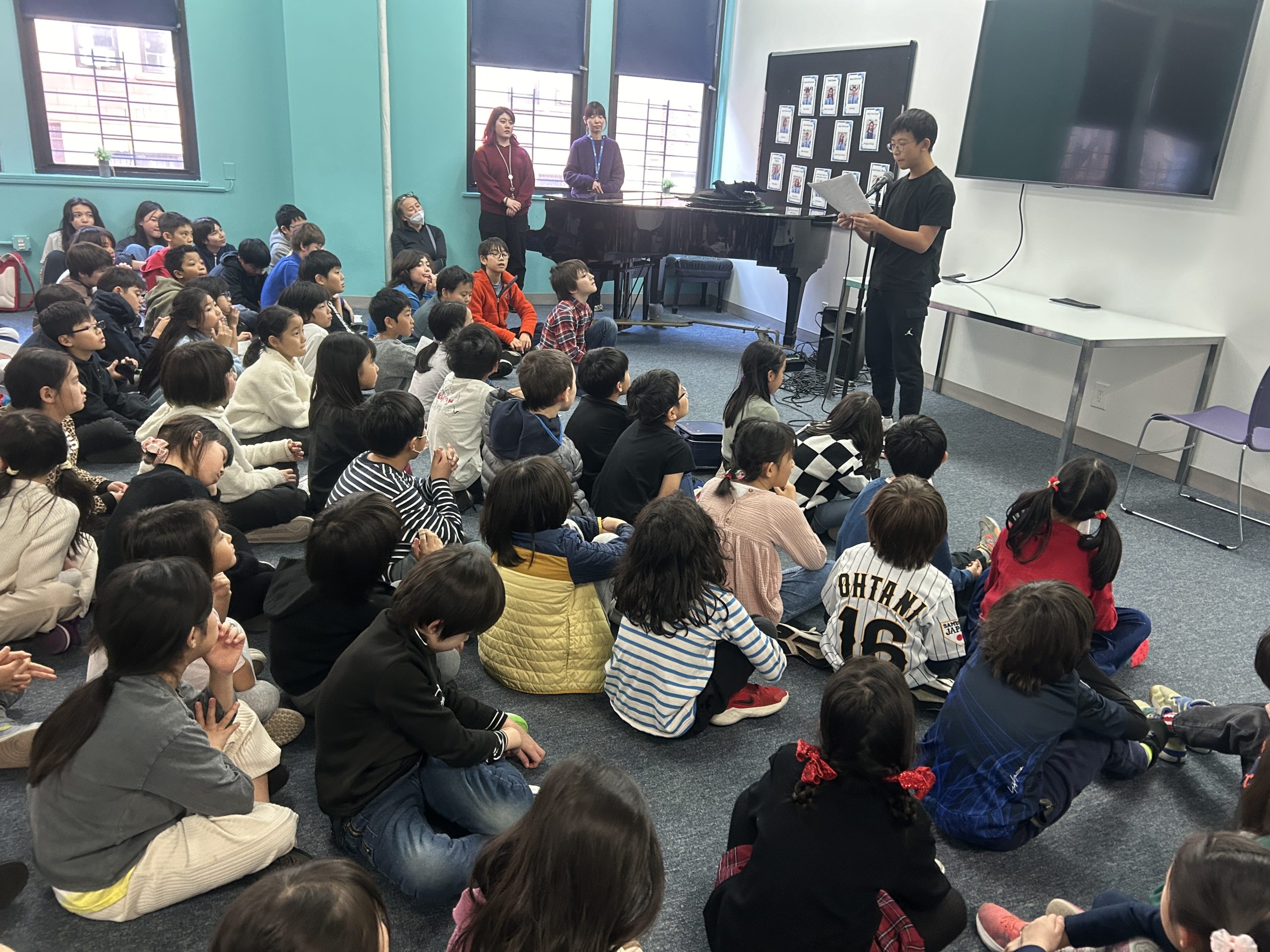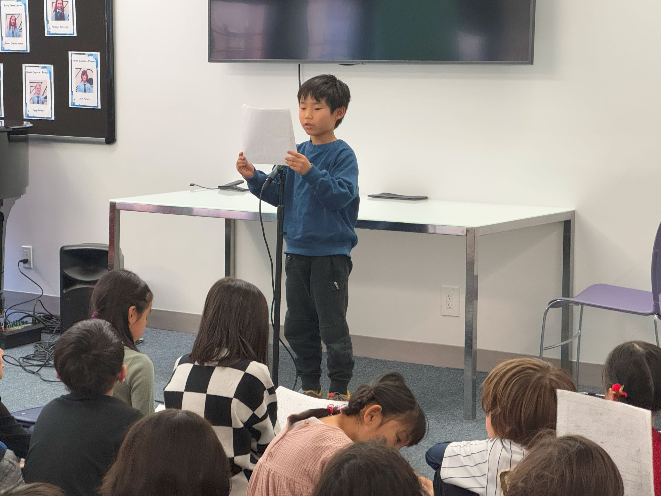 育英サタデースクール・マンハッタン校(牧野佳代子ディレクター)は昨年12月14日、小学部全員(1~6年生)が一堂に会し、保護者も招いて作文発表会を開催した。