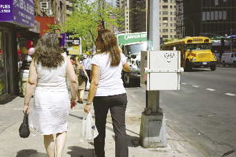 4月とは思えない温かな陽気に包まれたニューヨーク市。薄着で外出する女性ら=16日(photo: Tome)