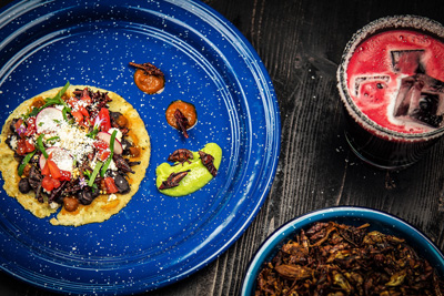 この流れをいち早く捉えていたのはレストラン業界。ミシュラン2ッ星も獲得したコペンハーゲンにある北欧料理の名門店Nomaでは、3~4年ほど前から生の海老に長野産の生きたアリを施した料理を提供していました。ニューヨークではイーストビレッジにあるモダンなメキシカンレストラン、その名も「ブラック・アント(黒アリ)」が有名。塩とともに潰したアリをグラスの縁に塗ったメキシカンカクテルや、トルティーヤの上にバッタのソテーが惜しげもなくのったタコス。食わず嫌いと言っている余裕のない時代が来る前に、今のうちに食しておけば食糧難も恐くない!?
