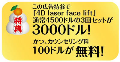 4種類のレーザーが皮膚の深部に届き、ハリと ツヤのある肌に。(1回1500ドル、3回4500ドル)