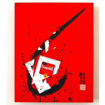 パソコン画面からランダムに抽出したイメージをプリントアウトし、その上に東洋と西洋、両方のカルチャーから影響を受けたドローイングを加えた新作を発表。