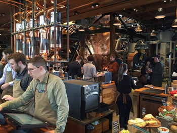 シアトルの店舗では、豆を量り売りしたり、ハンドドリップやサイフォンを使ってコーヒーを抽出するなど、本格派のコーヒーを提供しており、“サードウェーブ・コーヒー”として人気のあるブルーボトル・コーヒーに対抗する新業態となる。