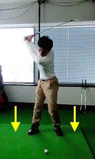 皆さんもぜひ、トップで右足と左足の体重配分が50:50になるようなスイングをして、体重移動の少ないスイングを身につけましょう!