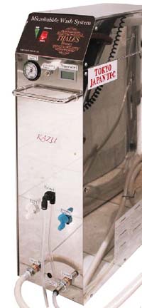 「マイクロバブル・ウォッシュ・システム」は世界中で特許を獲得したマイクロバブル製造機。もとは動物医療業界で使われており、動物たちの皮膚病などのトラブルを改善することで話題になった。今では美容界からも注目され、日本はもとより海外でも需要を伸ばしている。