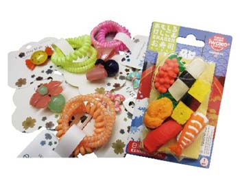 ㊨おもしろ消しゴム(5.99ドル) ㊧髪留め類(1.99ドル~)