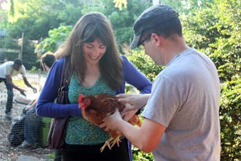 鶏舎を訪れ、ニワトリの世話の仕方、卵の孵化などについて学ぶワークショップ。