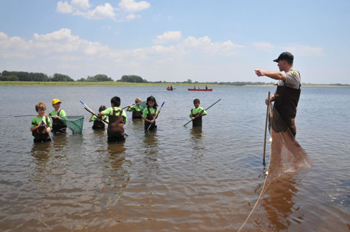 パークレンジャー指導の下、投網を使って魚を捕獲する。道具支給。対象年齢8歳以上。
