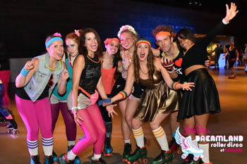 ローラースケートで80年代の音楽を楽しむディスコナイト。21歳以上対象。