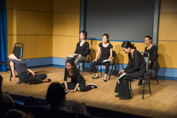 熊本みゆき、浅野愛美、範多美樹、茨木綾子ほか、日本人女優8人が全員黒い衣装に身を包み、全編を英語で演じ、そのうち6人は男性役を演じたが、違和感なく自然に演出された。また、台本を手にしているものの、台詞は全て暗記された上で役作りもされ、見応えのある公演であった。