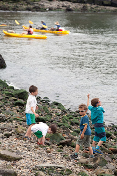 カヤック体験や、地引網でつかまえた水生生物の観察などが楽しめる。