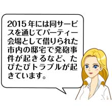 これまでも市内では、同サービスを利用した宿泊客が盗みを働く事件が発生しており、今年2月にはブルックリン区ウィリアムズバーグで宝石や家電製品など5千ドル(約51万円)相当が盗まれる事件があった。