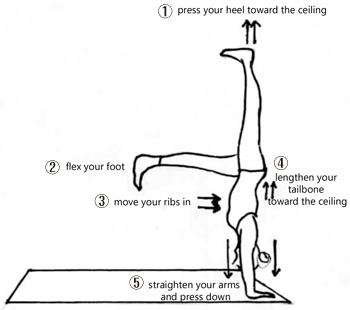 ①Press your heel toward the ceiling かかとを天井に向けて突き出す