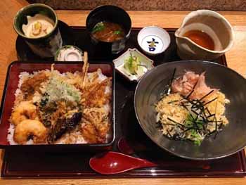 オープンから2周年を迎えたマンハッタン区の天婦羅まつ井は、17日からランチ営業を開始した。メニューは海老、穴子、牛蒡かき揚げなど具だくさんの「彩り天重」と冷がけの「石臼せいろそば」の取り合わせに、「松茸茶碗蒸し」、「季節のデザート」のセット。1人前40ドル。そばには別料金での追加トッピングも可能。ランチ営業は月〜金曜の正午〜午後2時、ラストシーティングは午後1時半。