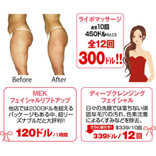 足やお腹に付いたセルライトの除去に効果抜群と話題の「ライポマッサージ」は、ローラーが脂肪を吸引しながら深部のセルライトにアプローチし、でこぼこの肌をなめらかにするやせたい人への救世主。通常高額のメニューも、同店なら“ヘブン価格”で体験できる。明るく清潔感あふれる同店で、年の瀬に向けてカラダのラインをすっきりさせよう!