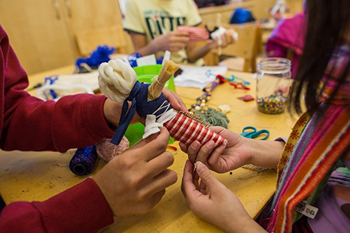 ネイティブアメリカン伝統工芸、トウモロコシの皮で作る人形「コーンハスクドール」のワークショップ。工作の後は、ネイティブアメリカンの昔話の読み聞かせも。