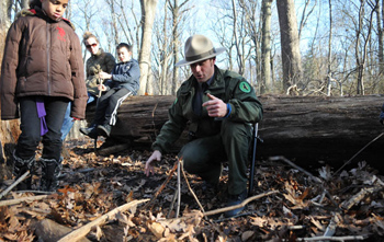 火おこしなどが学べる野外教室。パークレンジャーが自然界で生き抜くために知っておくと便利なサバイバル術を伝授。8歳以上対象で、家族での参加歓迎。