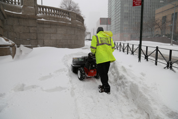 今年1月の大雪では、特にクイーンズ区の裏道などで除雪作業が遅れて苦情が相次いだ。そのため、DOSでは210万ドル(約2億3千万円)をかけ、大型車が入ることができない道で除雪する小型ショベルカーなど、新しい作業用機器を購入した。DOSのヘンリー・エアハート氏は、「小回りが利くため、狭い裏道の除雪作業の能力と効率は向上する」と説明する。バス停や交差点、バイクレーンなどの除雪にも活用する予定だ。