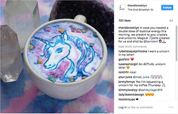 ウィリアムズバーグにあるカフェ、ジ・エンドは昨年12月からカラフルな「ユニコーンラテ」を販売しており、訴状によると同商品は「好評を得て成功した」という。同店は今年1月20日に商標登録申請を行い、現在審理中だ。
