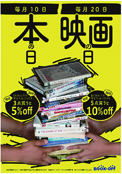 書籍、ゲームソフト、CD、DVD、スマホなどがそろう総合リユース店。毎月10日は「本の日」、20日は「映画の日」。それぞれ3ドル以下の本やDVDを3点購入すると合計額から5%引き、5点で10%引きとお得!