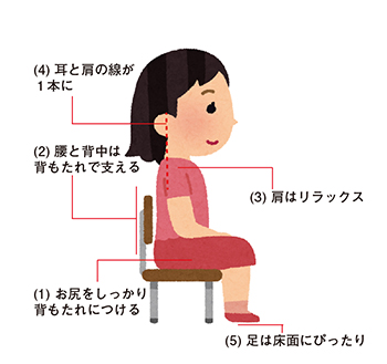 (1)お尻が背もたれにぴたりと付くように深く座る