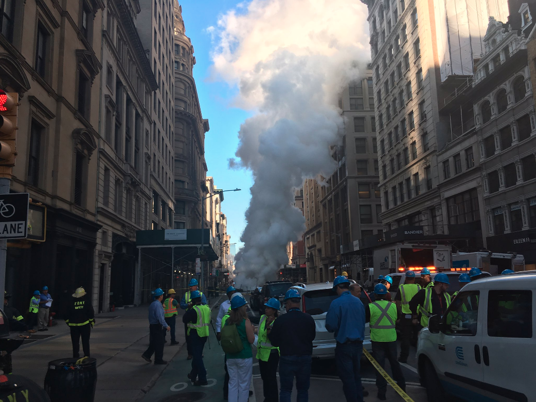 19日午前6時40分ごろ、マンハッタン区5番街の20丁目と21丁目の間の路上で、地下の蒸気管が突然爆発し、白い煙が立ち上った。amニューヨークはニューヨーク市消防局(FDNY)のダニエル・ニグロ局長の話として、8人が軽傷を負ったと伝えた。蒸気管は1932年に設置されたもの。