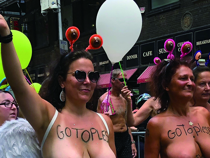 今年で11年目。ニューヨーク市では女性が公共の場で上半身裸になるのは1992年から合法だが、米国内でも違法とされている州もある。