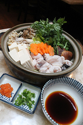 まずはコラーゲンたっぷりの「アンコウ鍋(1人35ドル)」と、上品な甘みの「フグ鍋(同)」を用意。東と西の冬定番の味だ。前菜3品と飲み放題2時間が付くコースは1人80ドル。